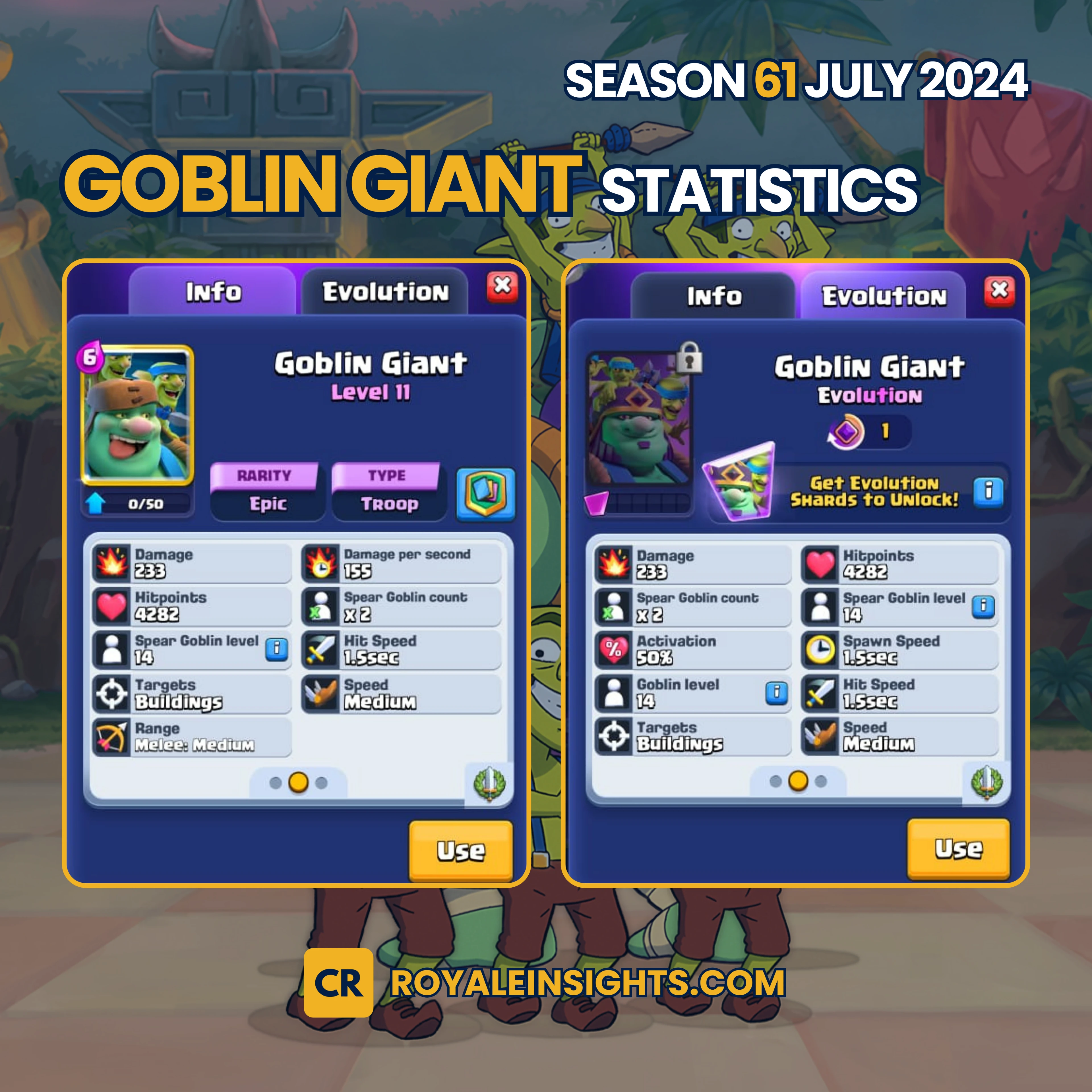 Now, we compare the statistics of the Goblin Giant and Evolved Goblin Giant (Level 11):